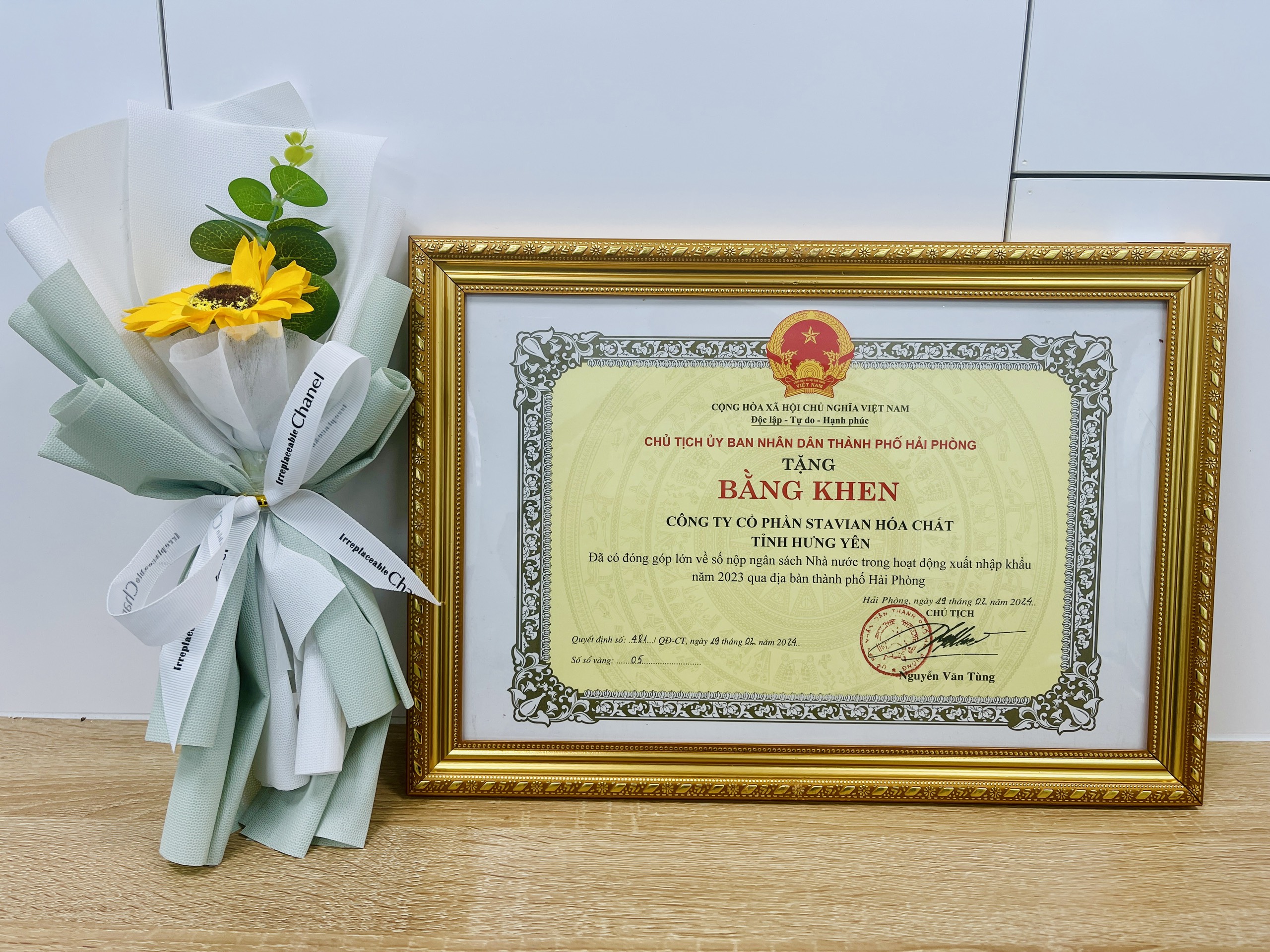 On March 20, 2024, the Hai Phong City People’s Committee organized the Dialogue with Import-Export Enterprises Conference with the theme “Cooperation – Development – Efficiency.” Attending the event, Stavian Chemical Joint Stock Company (Stavian Chemical) was honored to be one of 48 enterprises to receive the merit certificate for contributing to the State budget in 2023 import and export activities through Hai Phong city.