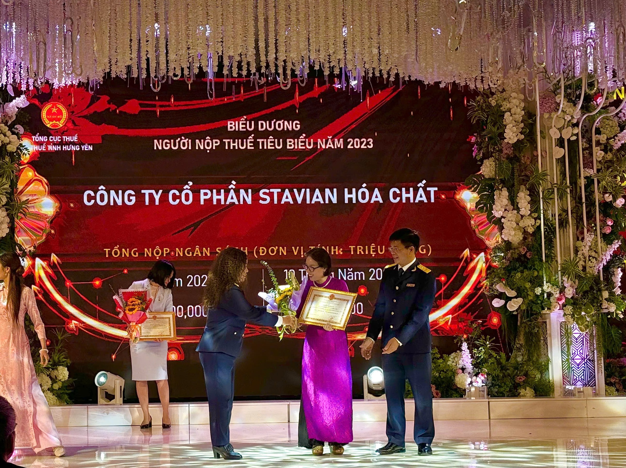 On November 27th, 2024, at Lam Son Convention Center (Hung Yen province), Stavian Chemical Joint Stock Company (Stavian Chemical) was honored by the Hung Yen Department of Taxation to receive the merit certificate and honor in the category “Enterprises well-compliant with tax legislation policy in 2023”. The recognition was part of the “Commendation of Exemplary Taxpayers in 2023 and Business Dialogue 2024” conference organized by the Hung Yen Department of Taxation to acknowledge enterprises that have made significant contributions to the state budget and fulfilled their tax obligations responsibly over the past year.