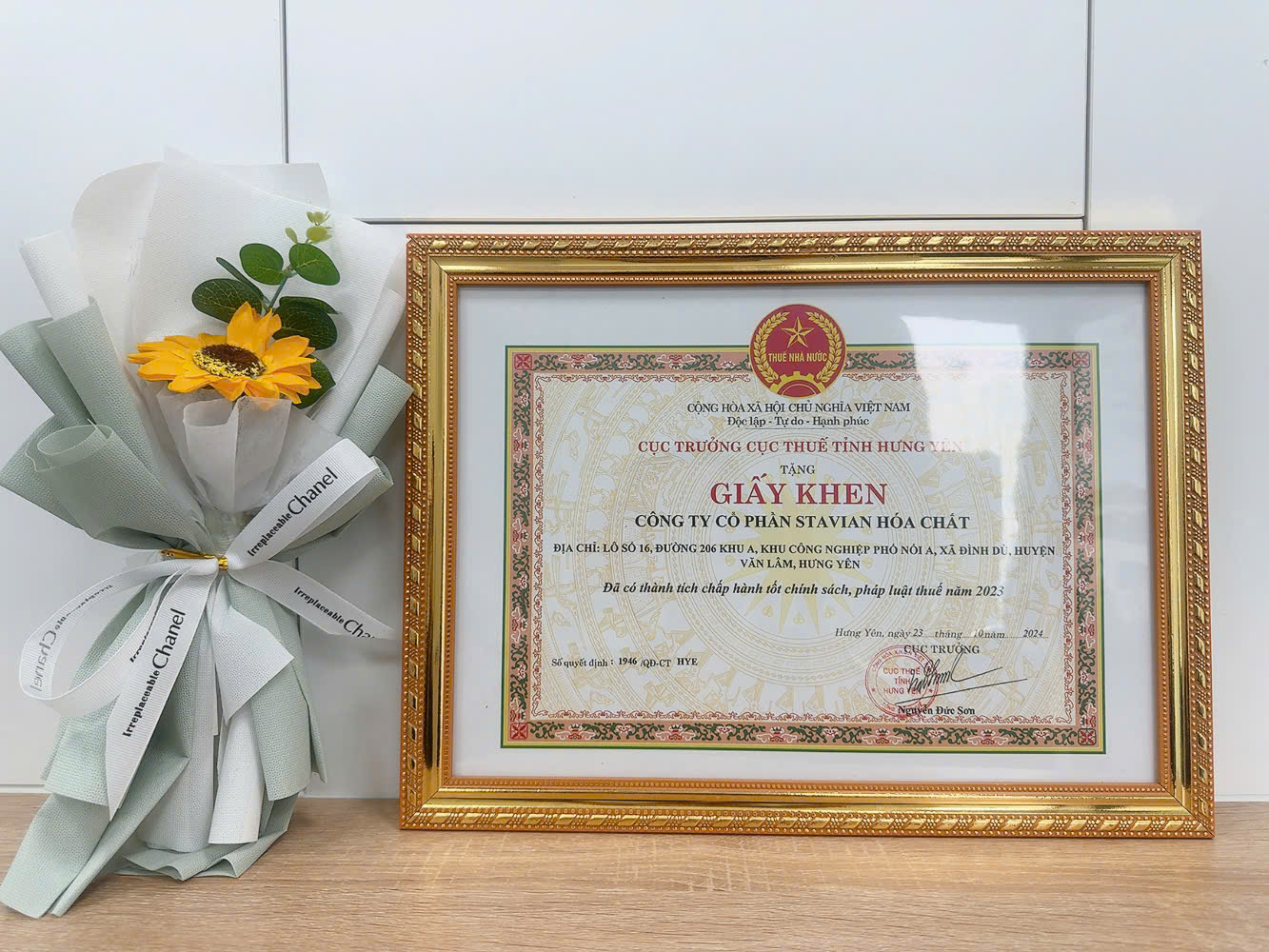 Stavian Chemical honored by the Hung Yen Tax Department for excellent compliance with tax laws and policies in 2023